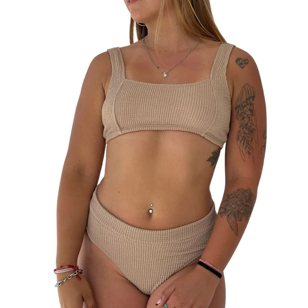 Nuestra Bikini Aimar está pensada para que te sientas cómoda, segura y canchera bajo el sol. De dos piezas y con diseño colaless, es ideal para broncearte sin preocuparte por nada.